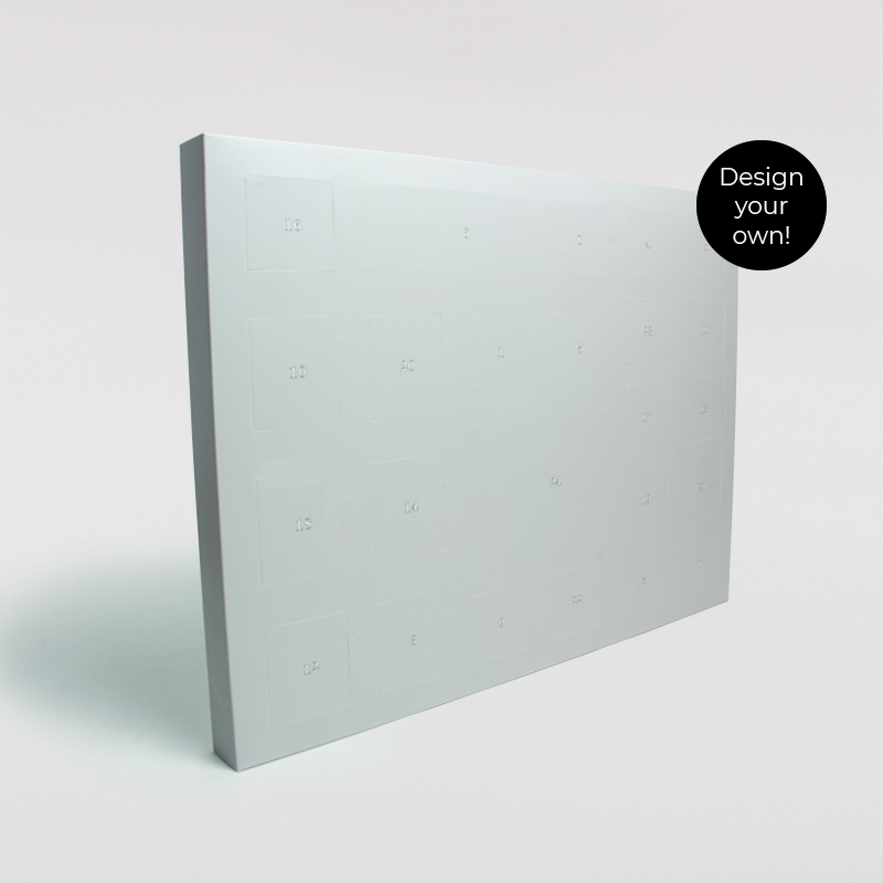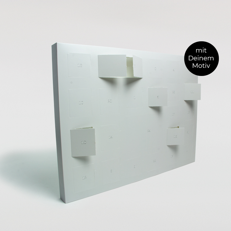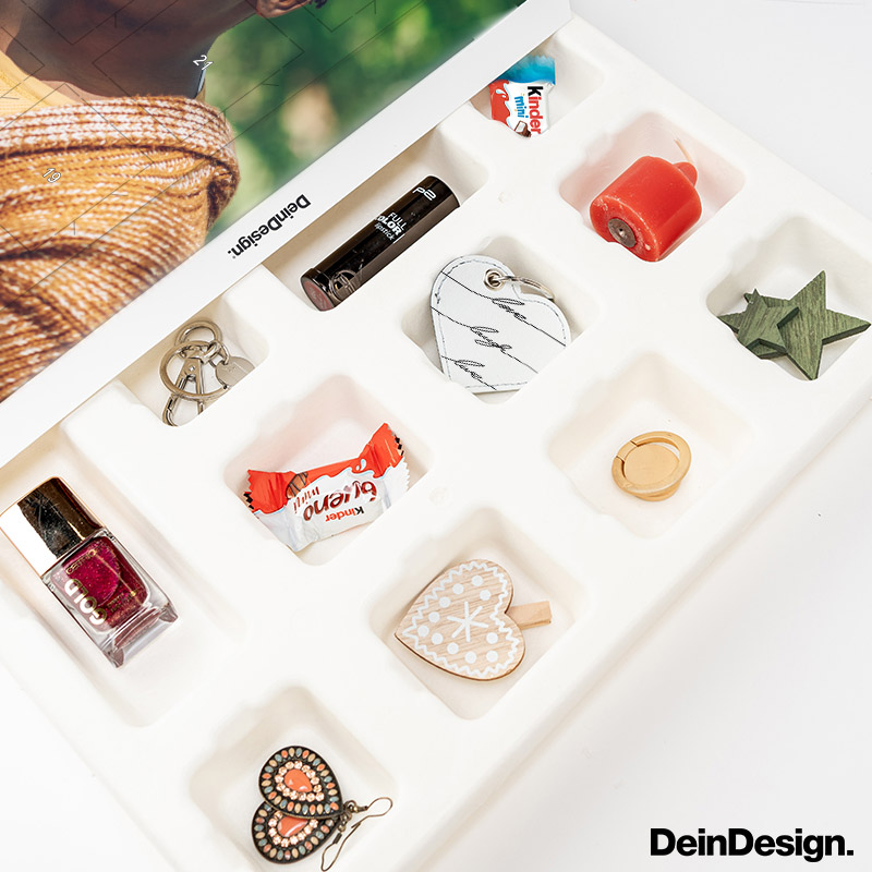 Der Adventskalender zum Selbstbefüllen von DeinDesign ist das perfekte Geschenk für Dich und Deine Liebsten mit persönlichem Touch: Den Inhalt der 24 Türchen kannst Du ganz nach Deinem Geschmack bestimmen. Die verschieden großen Türchen bieten Dir ausreichend Platz für Deine persönlichen Geschenkideen. Die Vorderseite des Adventskalender kann individuell mit dem persönlichen Lieblingsfoto bedruckt werden.