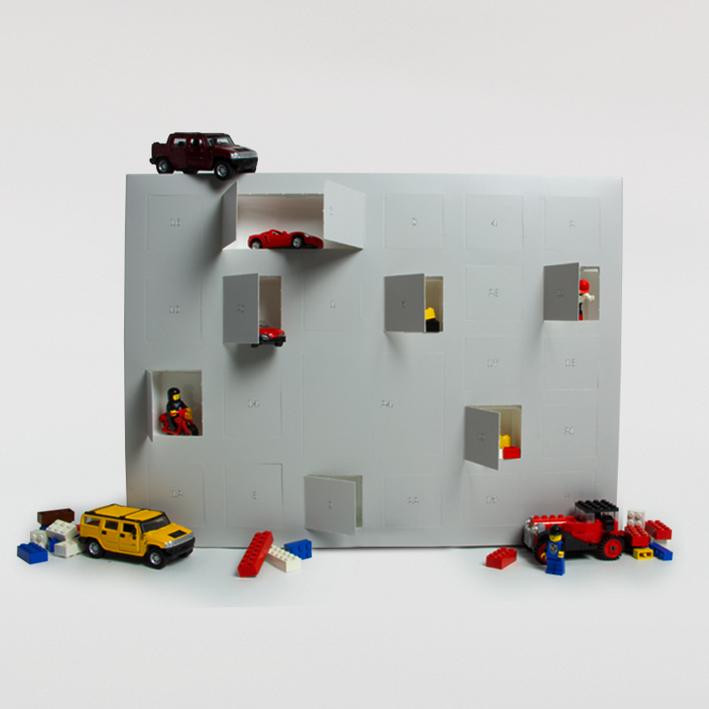 16 Türchen mit den Maßen 5,2 x 4,9 x 3,5cm