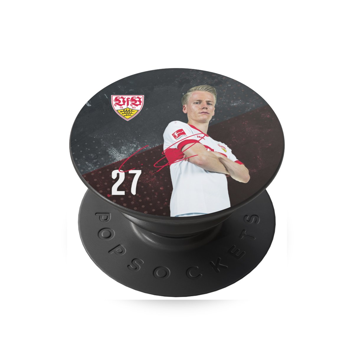 Das Vereinswappen des VfB Stuttgart auf der eigenen Hülle