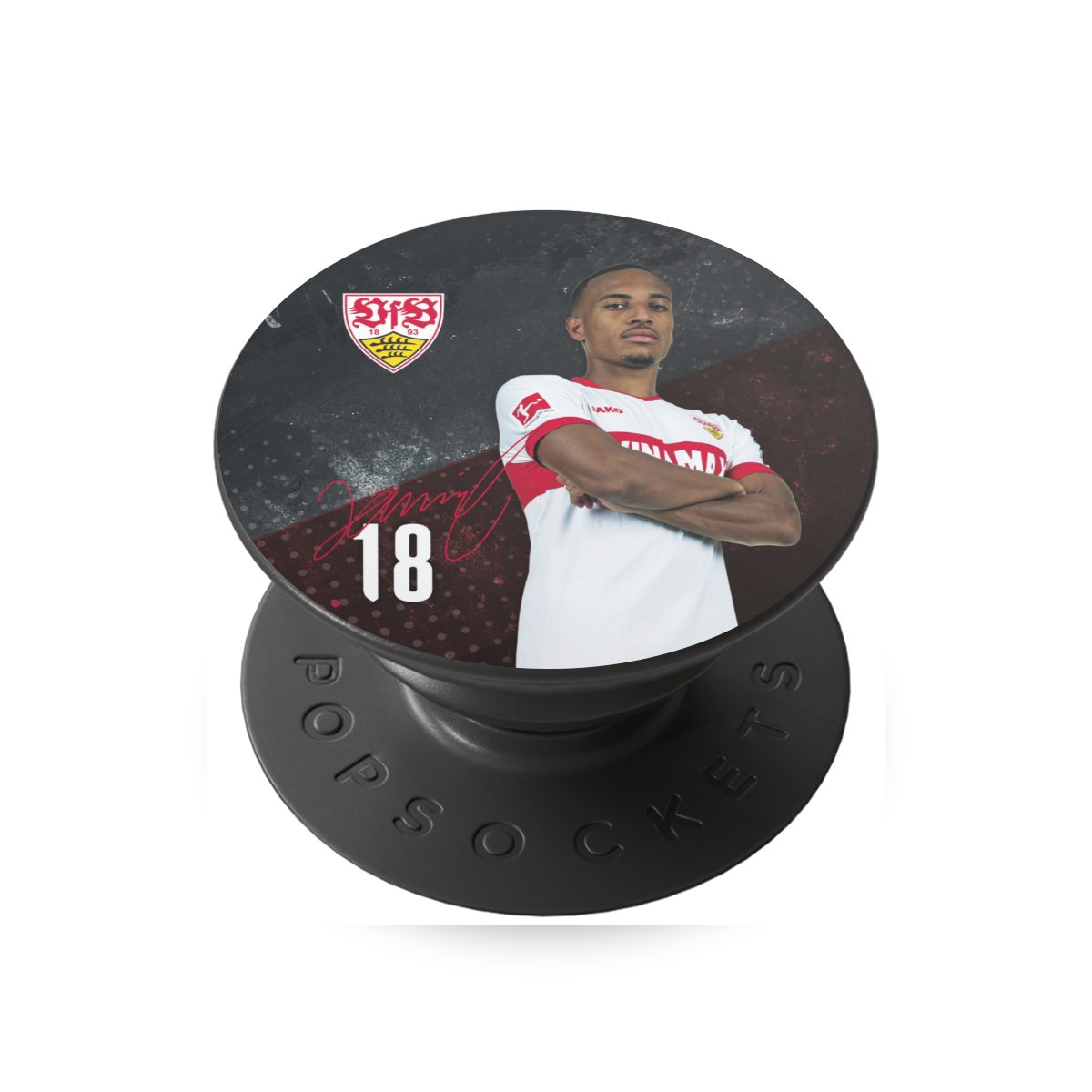 Das Vereinswappen des VfB Stuttgart auf der eigenen Hülle