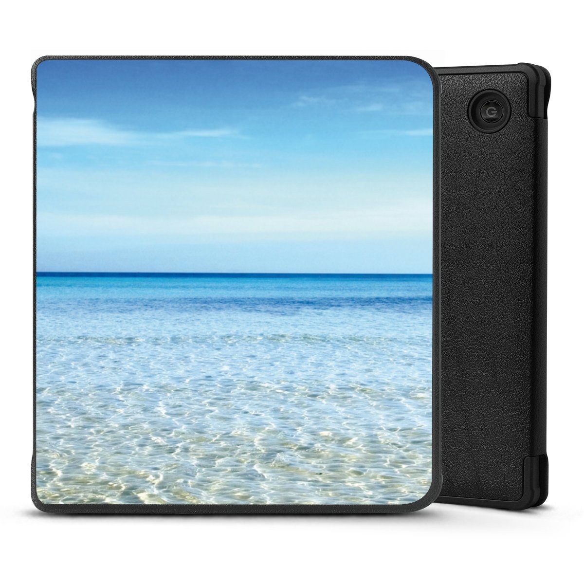 Die praktische Hülle schützt Deinen E-Reader auf der Vorder- und Rückseite durch hochwertiges und veganes Skai®-Kunstleder. Innen befindet sich eine robuste Polycarbonat Schale, zusätzlich ist die Innenseite der Hülle mit weicher Mikrofaser gefüttert, um Dein Gerät noch besser zu schützen. Durch das flexible Flip Cover ist der Bildschirm Deines E-Reader sicher vor Kratzern und Stößen. Die Hülle ist in der Farbe Schwarz erhältlich.