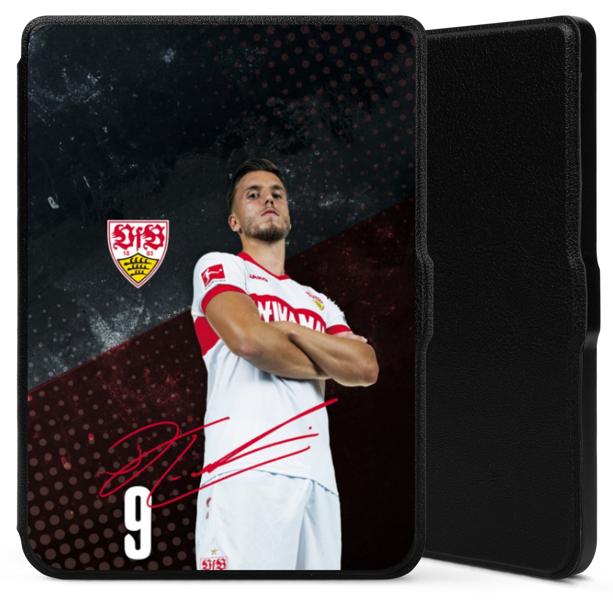 Das Vereinswappen des VfB Stuttgart auf der eigenen Hülle