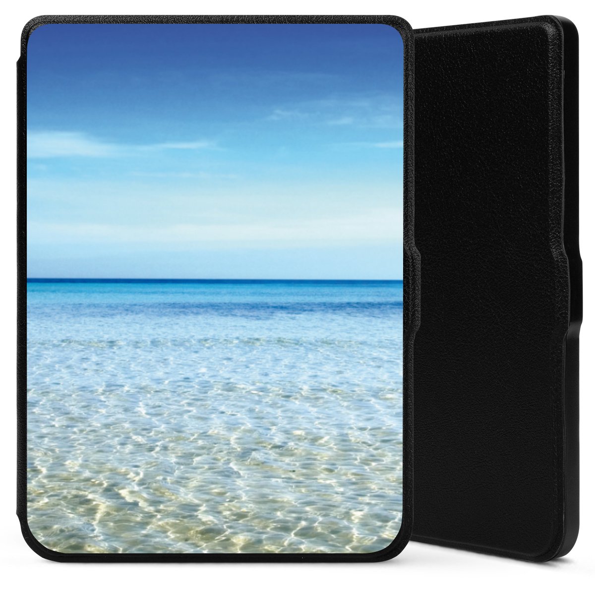 Die praktische Hülle schützt Deinen E-Reader auf der Vorder- und Rückseite durch hochwertiges und veganes Skai®-Kunstleder. Innen befindet sich eine robuste Polycarbonat Schale, zusätzlich ist die Innenseite der Hülle mit weicher Mikrofaser gefüttert, um Dein Gerät noch besser zu schützen. Durch das flexible Flip Cover ist der Bildschirm Deines E-Reader sicher vor Kratzern und Stößen. Die Hülle ist in der Farbe Schwarz erhältlich.