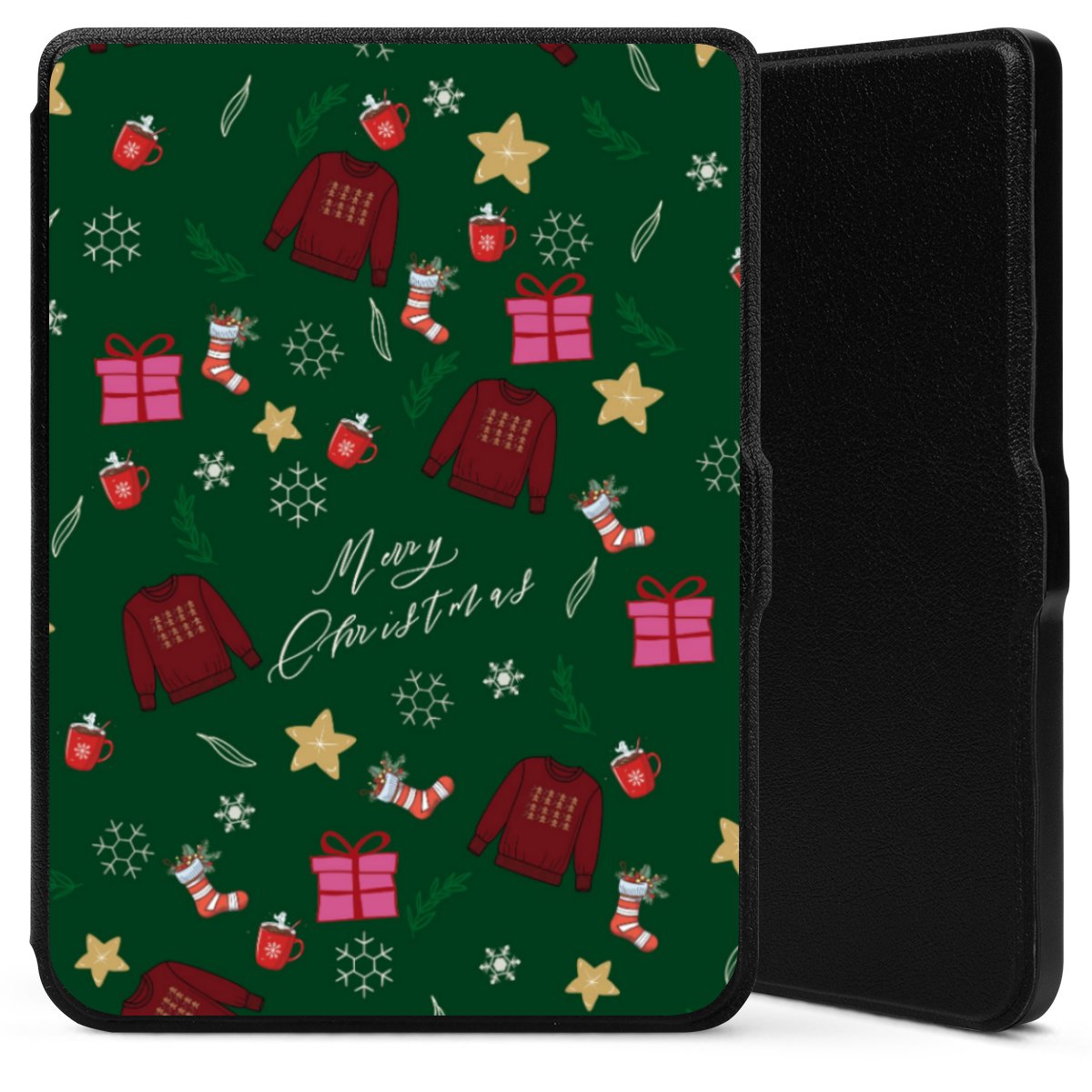 Die praktische Hülle schützt Deinen E-Reader auf der Vorder- und Rückseite durch hochwertiges und veganes Skai®-Kunstleder. Innen befindet sich eine robuste Polycarbonat Schale, zusätzlich ist die Innenseite der Hülle mit weicher Mikrofaser gefüttert, um Dein Gerät noch besser zu schützen. Durch das flexible Flip Cover ist der Bildschirm Deines E-Reader sicher vor Kratzern und Stößen. Die Hülle ist in der Farbe Schwarz erhältlich.