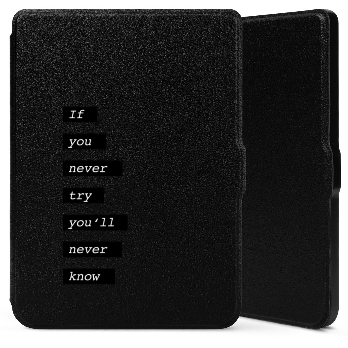 Die praktische Hülle schützt Deinen E-Reader auf der Vorder- und Rückseite durch hochwertiges und veganes Skai®-Kunstleder. Innen befindet sich eine robuste Polycarbonat Schale, zusätzlich ist die Innenseite der Hülle mit weicher Mikrofaser gefüttert, um Dein Gerät noch besser zu schützen. Durch das flexible Flip Cover ist der Bildschirm Deines E-Reader sicher vor Kratzern und Stößen. Die Hülle ist in der Farbe Schwarz erhältlich.