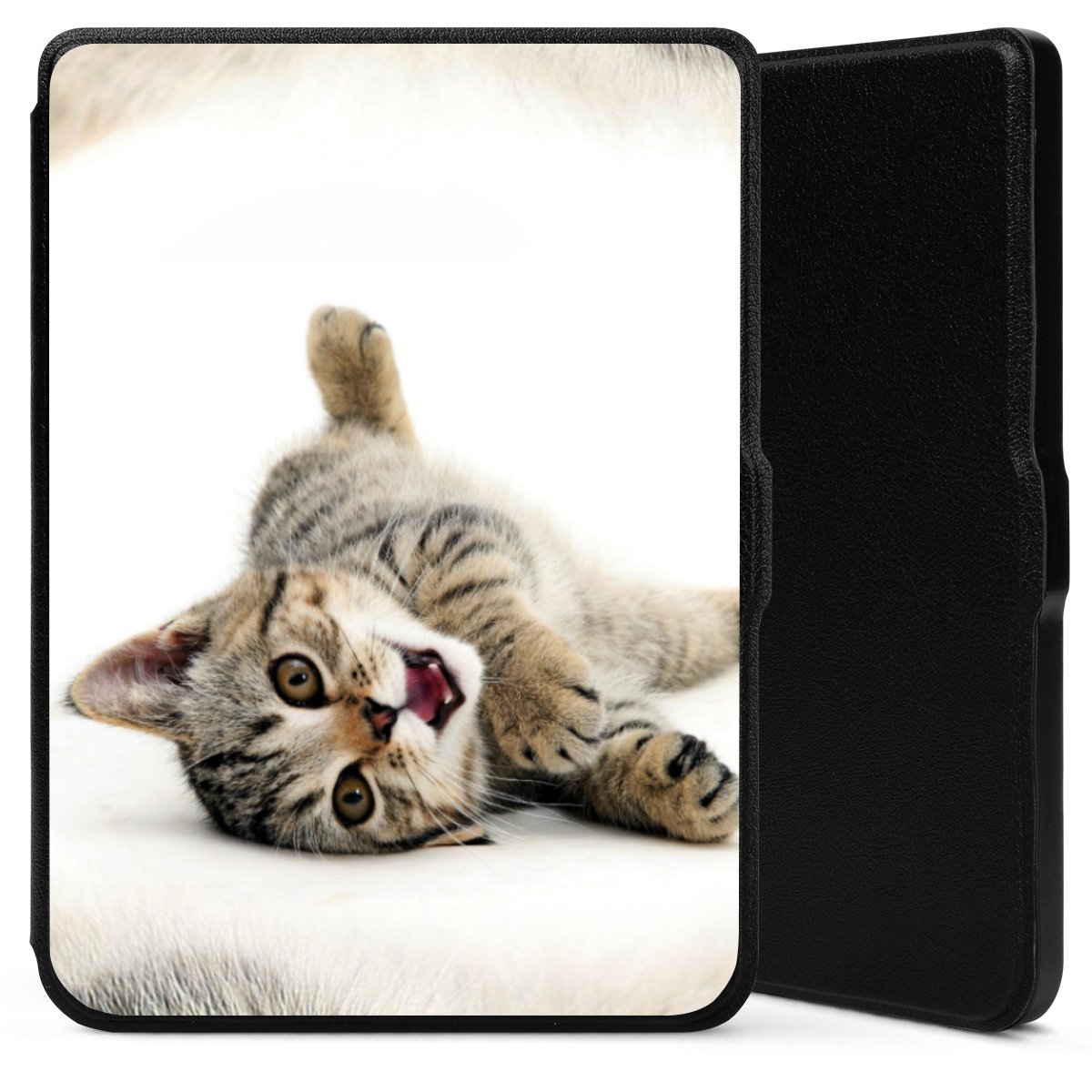 Die praktische Hülle schützt Deinen E-Reader auf der Vorder- und Rückseite durch hochwertiges und veganes Skai®-Kunstleder. Innen befindet sich eine robuste Polycarbonat Schale, zusätzlich ist die Innenseite der Hülle mit weicher Mikrofaser gefüttert, um Dein Gerät noch besser zu schützen. Durch das flexible Flip Cover ist der Bildschirm Deines E-Reader sicher vor Kratzern und Stößen. Die Hülle ist in der Farbe Schwarz erhältlich.