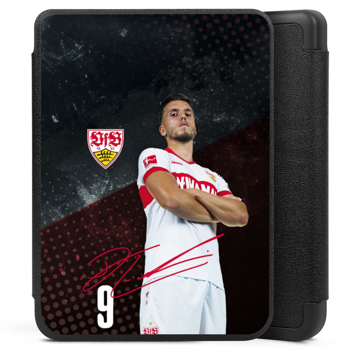 Das Vereinswappen des VfB Stuttgart auf der eigenen Hülle